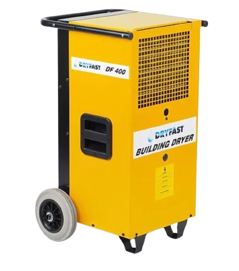 3) Kachel, (alleen nodig als het kouder weer is), bij een lagere ruimte temperatuur zal een bouwdroger ook minder water opleveren, 20 graden is ideaal, als het kouder dan 12 graden is adviseren we om een kachel bij de bouwdroger te plaatsten.